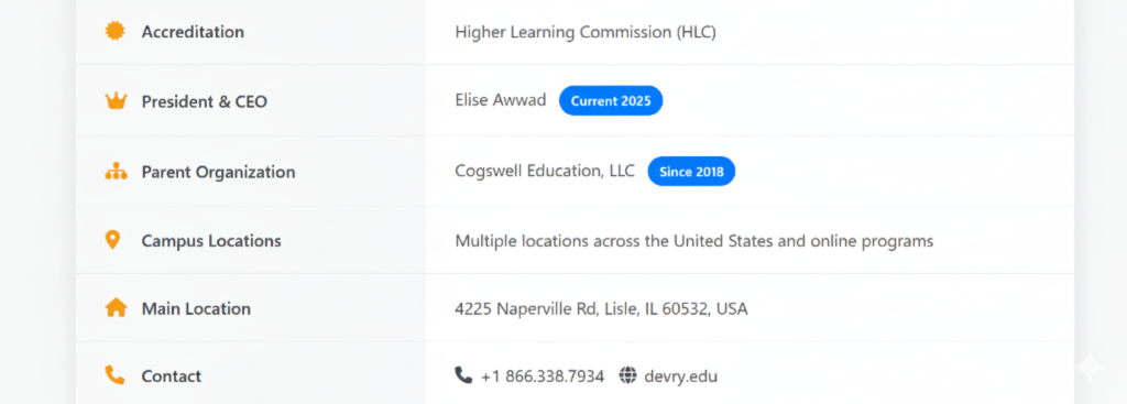 It is regionally accredited by the Higher Learning Commission (HLC), which is one of the seven regional accrediting bodies recognized by the U.S. Department of Education. This accreditation means that DeVry meets established standards for quality in higher education.