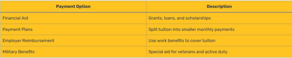 An admissions representative can help you explore all the financial aid opportunities available based on your circumstances.